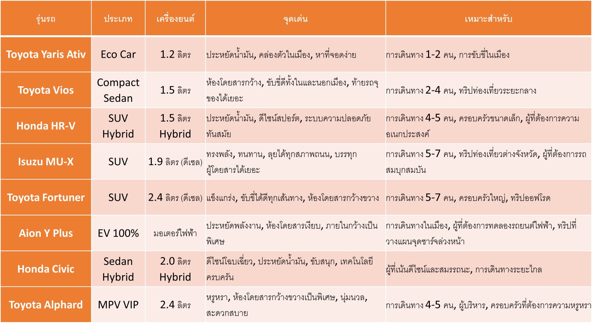 เลือกให้เหมาะกับการเดินทาง: ข้อมูลรถยนต์สำหรับเช่า